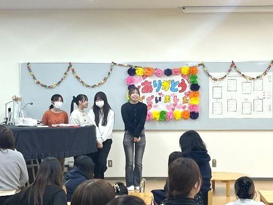幼児教育学科では、1年生と2年生の交流会の機会を大切にしています。1年生を迎える「歓迎会」から始まり「実習報告会」、そして1年の最後には卒業を控えた2年生に感謝の気持ちを伝える「歓送会」を行っています。