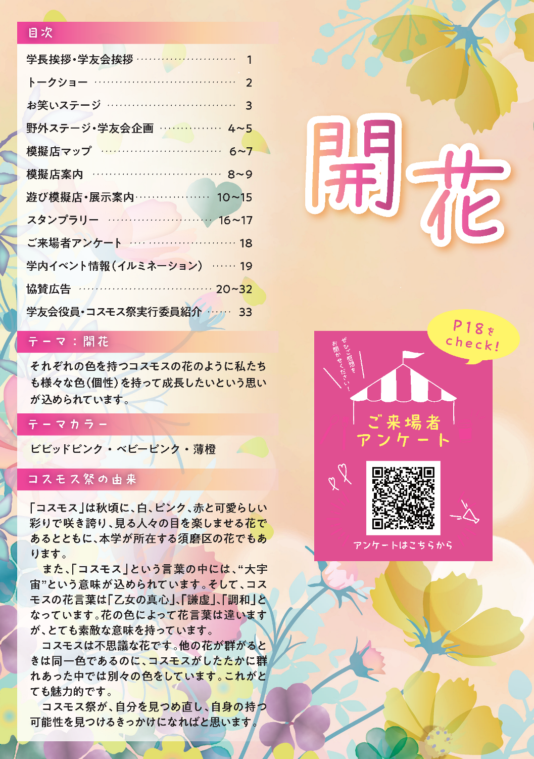 コスモス祭が、自分を見つめ直し、自身の持つ可能性を見つけるきっかけになればと思います。