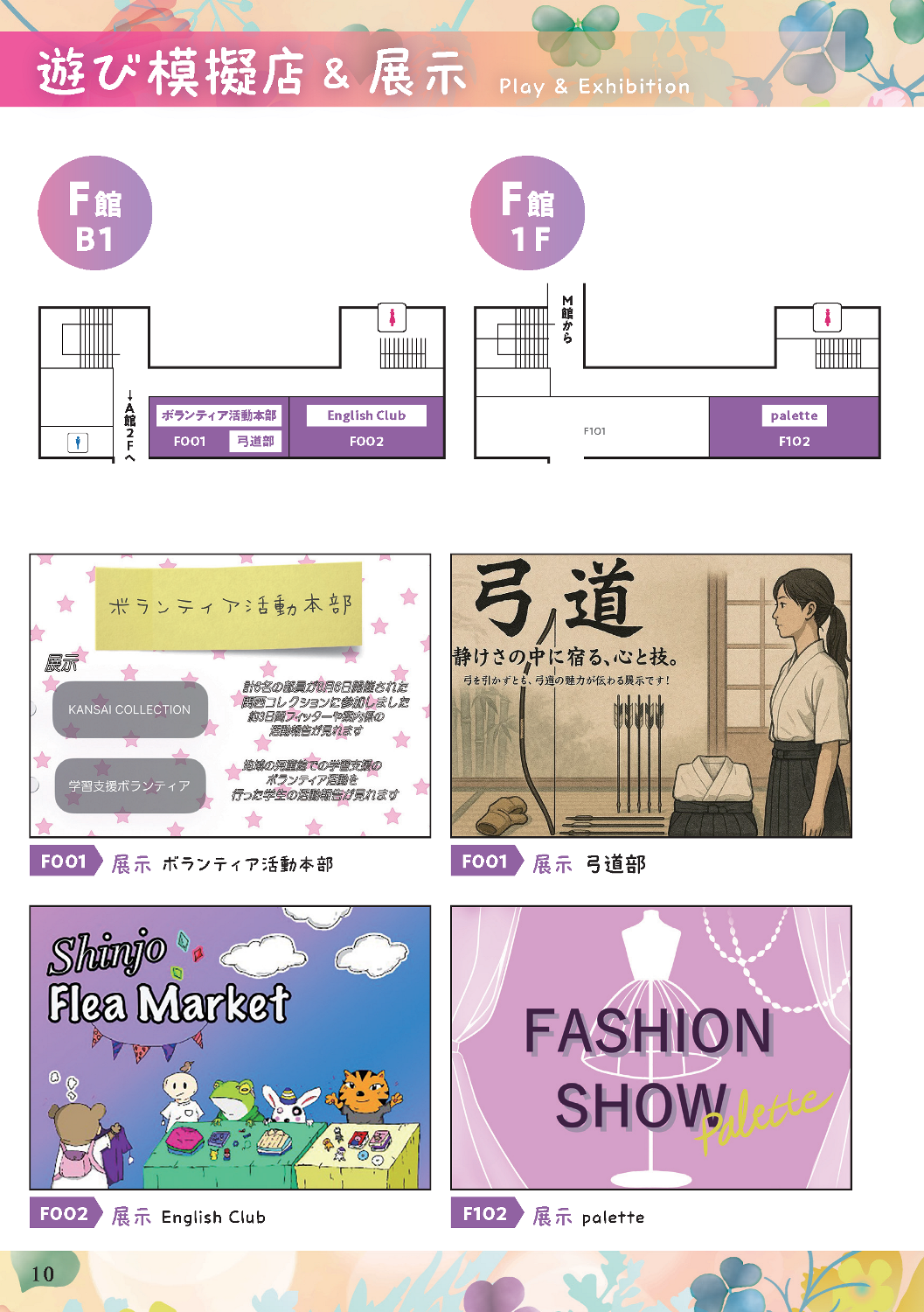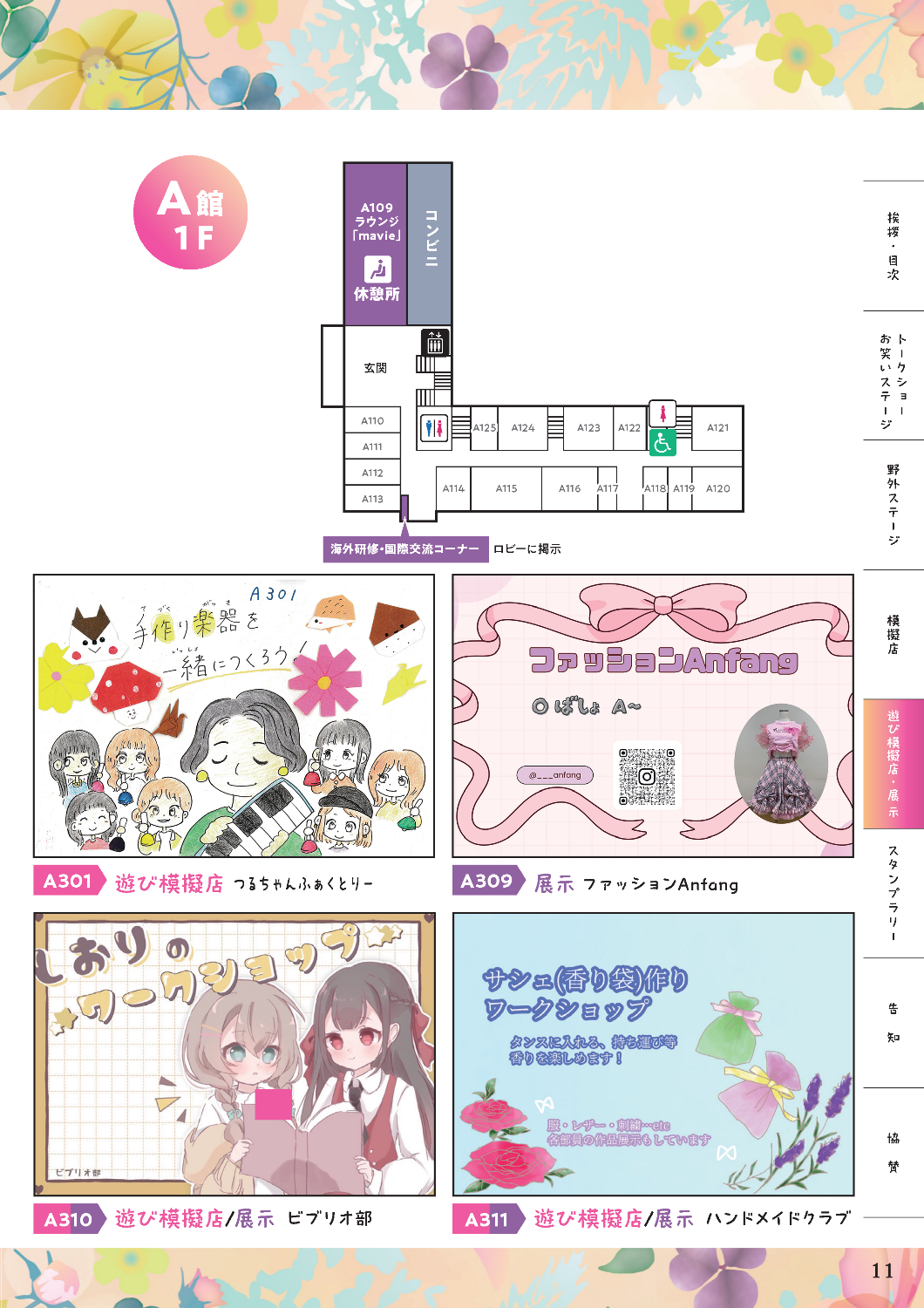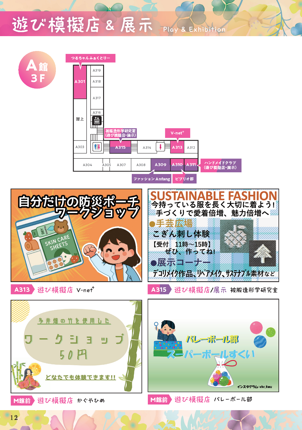 イベントメニュー:野外ステージ、トークショー、お笑いライブ、学内展示、模擬店、館内イベントなど