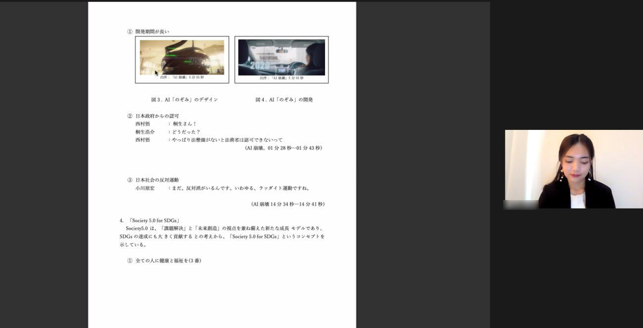 2021年7月19日・月曜日の昼休みに2021年度第1回留学生学修成果発表会をオンライン(Zoom)で開催しました。インドネシア・ウダヤナ大学からの留学生が、約20分間、日本語で母国の卒業論文の概要発表を行いました。この留学生は、新型コロナウイルスの感染拡大により渡日できず、2020年9月よりオンラインのみで神女大の授業を履修してきました。ウダヤナ大学の教員や学生の参加もあり、神女大の教職員や学生を合わせ、約50名が参加しました。発表後には、発表内容についての質疑応答が行われました。
