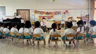 2025年10月9日に本学附属高倉台幼稚園にて、3歳児クラスの子どもたちと一緒に、英語に触れる楽しい活動を行いました。