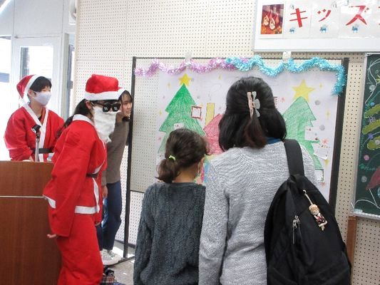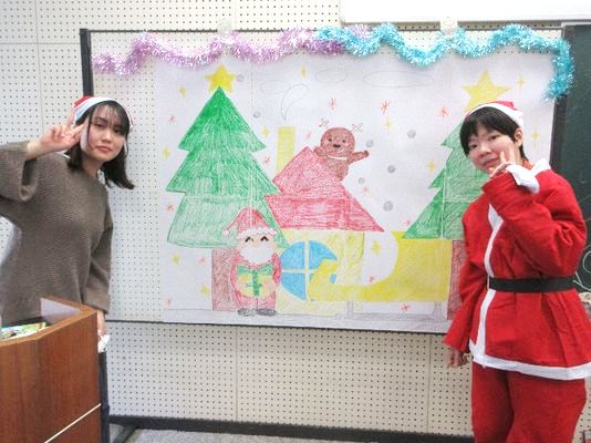 当日は19組のこどもたちと保護者が集まり、学生たちは「黒板アート」の他にクリスマスツリーの作成にも参加しました。
