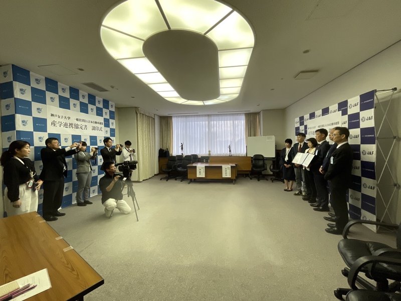 一般社団法人日本自動車連盟(JAF)兵庫支部で長年にわたり常任委員を務めてきた津田教授から地域連携を通して、2025年10月27日に産学連携協定を締結いたしました。