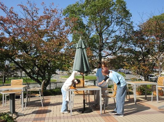 11月8日・土曜日のくじらくらぶは、学生たちが考えた謎解きをして、お宝のある場所を導き出して探しに行くという「宝探し」をしました。いつもの宝探しに謎解きがプラスされました。謎解きは、10月27日の「教養演習Ⅰ」の授業の中で、学生同士で考えてカードに描きました。お宝は、前もって学生が用意した色々な形のミニ消しゴム、シール、スーパーボール、ストラップなどが入ったガチャガチャカプセルです。