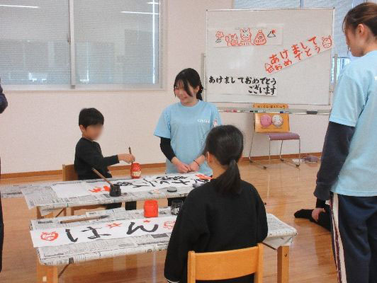 2026年1月10日・土曜日のくじらくらぶは、子どもたちと恒例の書初めをしました。