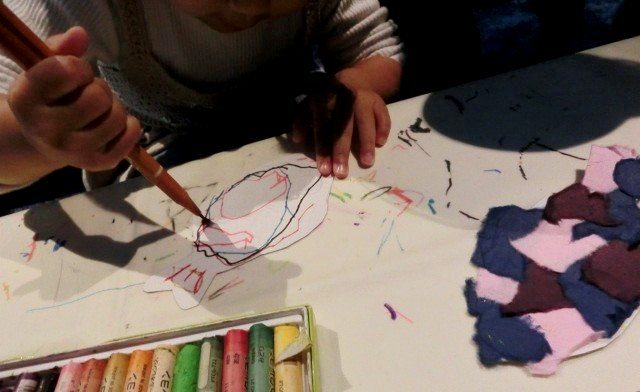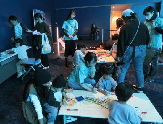 その他にも、魚の型に子供たちが色づけや考えた魚を作成し、神戸須磨シーワールドの型が準備してくださった水中風景を撮影したパネルに貼り、一緒に記念撮影をして楽しいひとときを過ごしました。