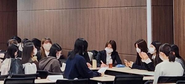 また、実習病院の指導者様にもご参加いただき、授業にご参加いただく前に、本授業の概要を説明させていただきました。学生たちは、指導者様からの臨床経験をふまえたご助言をいただくことで、看護実践のあり方についてより深く考える時間となりました。指導者様にとっても、学生の思いや思考過程を知っていただく機会となり、今後の臨地実習指導に活かしたいとのお声もいただきました。