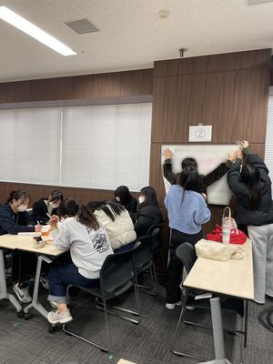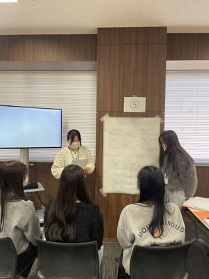 実習の最終日には、学内でグループごとに実習での学びを整理し、ポスター形式で発表を行いました。発表では、それぞれの実習先での経験や気づきを共有し、互いの学びを深める活発なディスカッションが行われました。
