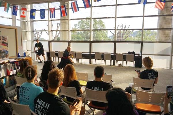10月14日(火)にAwaji Art Circusの9カ国13名のパフォーマー及びスタッフの皆さんが日本文化体験と国際交流を目的に神戸女子大学・須磨キャンパスを訪れました。